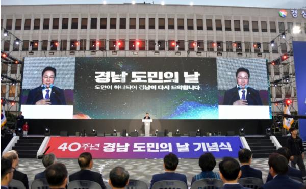 경상남도(도지사 박완수)는 14일 오후 경남도청 광장 특설무대에서 ‘40주년 경남 도민의 날 기념식’을 개최했다.