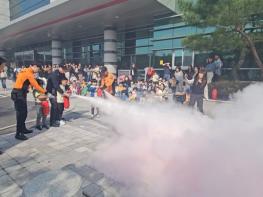 훈련을 마친 뒤에는 구갈119안전센터 소방대원의 안내에 따라 소화기와 소화전 사용법에 대해 교육했다.