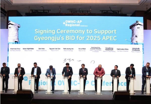 주낙영 경주시장은 “지속가능한 세계유산도시의 미래를 함께 만들어 나가는 뜻 깊은 자리에서 2025 APEC 경주 유치의 당위성을 다 함께 공감하고 지지를 선언해 준 세계유산도시에 깊은 감사를 드린다.”고 밝혔다.