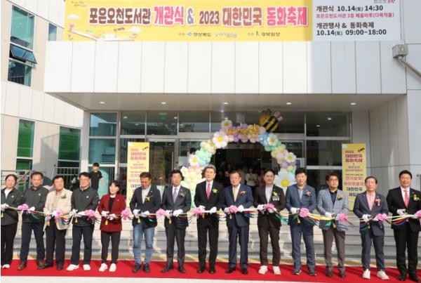 포항시는 14일 포은오천도서관에서 ‘포은오천도서관 개관식 및 2023 대한민국 동화축제’를 개최했다. 이날 이강덕 포항시장을 비롯해 김일만 포항시의회 부의장, 김병욱 국회의원, 한국선 경북일보 사장, 지역주민 등 5,000여 명이 참여해 어린이 특화도서관으로 재개관한 포은오천도서관의 개관을 축하했다.