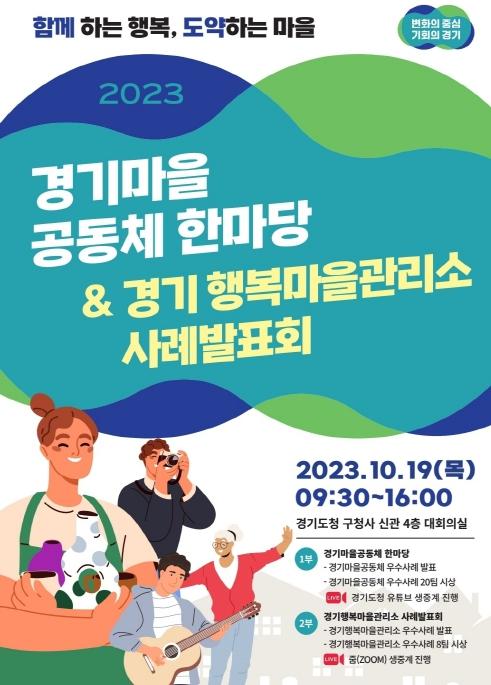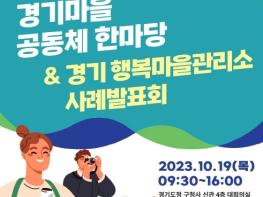 경기도가 오는 19일 수원시 팔달구 옛 경기도청사 신관에서 마을공동체 활동가와 행복마을관리소 지킴이들이 한자리에 모여 소통하는 ‘2023 경기마을공동체 한마당 & 경기 행복마을관리소 사례발표회’를 개최한다.