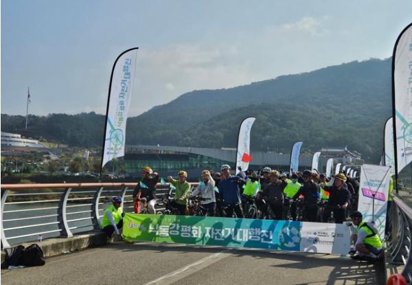 경북도는 10월 15일 칠곡 생태공원 및 낙동강 일원에서 황영호 경북도 복지건강국장, 김재욱 칠곡군수, 도의원, 자전거 동호인 등 500여 명이 참석한 가운데 “정전 70주년 기념 낙동강 평화 자전거 대행진”을 개최했다.