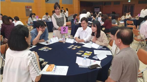 이날은 ‘별에서 온 그대?타로로 읽는 마음속 이야기’라는 주제로 특강를 하고, 이후 테이블마다 전문가 1명씩을 배치하여 타로를 활용해 참여자들의 마음속 이야기를 나누는 시간을 가졌다. 결혼 30년을 넘긴 부부부터, 신혼부부, 연애 중인 커플 등 다양한 시민 70여 명이 참여한 가운데 서로의 속마음을 얘기하며 소통하는 시간을 가졌다.