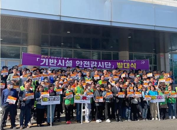 3개구 중에서 분당구가 먼저 220명의 기반시설 안전감시단을 구성해 지난 6일 발대식을 하고 본격 활동에 들어갔다.