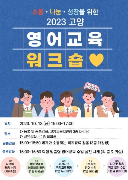 경기도고양교육지원청은 10월 13일 관내 초?중?고 영어 교과 담당 교사를 대상으로‘소통·나눔·성장을 위한 2023 고양 영어교육 워크숍’을 개최했다.