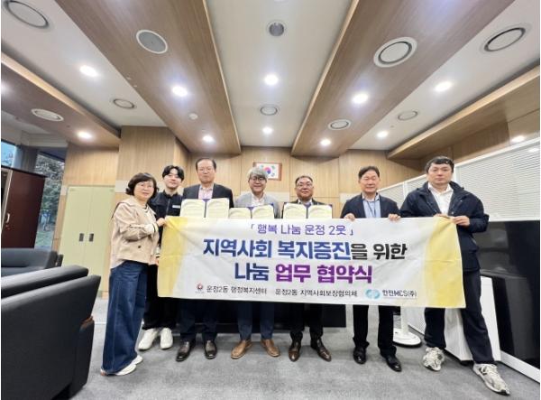 파주시 운정2동은 지난 13일 한전엠씨에스(한전MCS)(주) 파주지점과 사회안전망 구축을 기반으로 지역사회 복지증진을 위한 업무 협약을 체결했다.