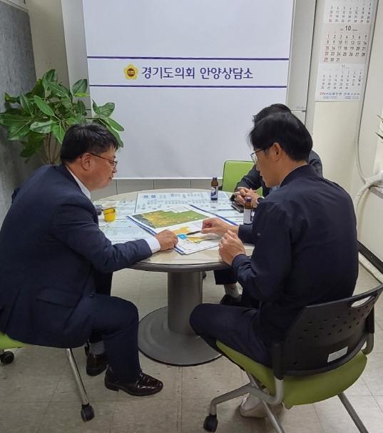 경기도의회 김재훈 의원(국민의힘·안양4)은 13일 의회안양상담소에서 인덕원 및 관양고 주변 도시개발사업 진행 상황 관련으로 경기도시주택공사 관계자들과 함께 면담을 실시했다.