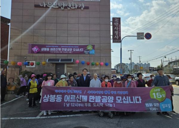 진주 약사정사는 15일 약사정사에서 신도와 봉사자들이 참여한 가운데 취약계층 어르신 150여 명을 대상으로 어르신 무료 점심 제공 행사를 개최했다.