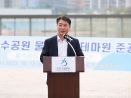 인천시설공단 청라공원사업단은 청라호수공원 물속광장에 계절감을 느낄 수 있는 테마원을 새롭게 조성하고 지난 13일 개장식을 개최했다.