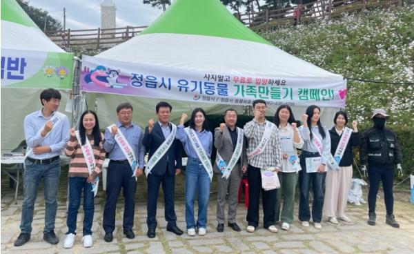 정읍시는 지난 13일에 구절초 지방정원에서 시민과 관광객을 대상으로 유기동물 입양 활성화 홍보 캠페인을 펼쳤다.