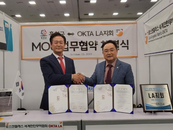 이번 미국시장조사 방미일정 중 세계한인무역협회 LA 지회(지회장 손애드워드)와 상호협력을 통한 수출교두보를 마련하고자 업무협약(MOU)을 체결했으며, LA 현지 한남체인, 시온마트, 감자바우 등 미국시장 조사를 통한 주요 소비층, 시장동향을 파악 홍천군 기업에 접목하여, 향후 LA 현지에서 홍천군 우수 농가공품에 대한 특판 행사를 계획한다고 밝혔다.