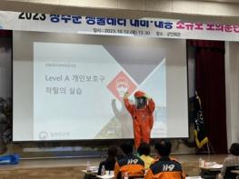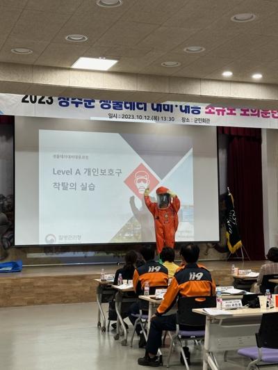 초동대응요원들은 생물테러 감염병의 이해 및 대응체계 교육을 받은 후 개인보호구 착·탈의 실습과 다중탐지키트 검사 시행 및 검체 이송을 수행했으며, 생물테러 의심상황 발생 시 신속하게 현장에 출동할 수 있는 역량강화 훈련을 실시했다.