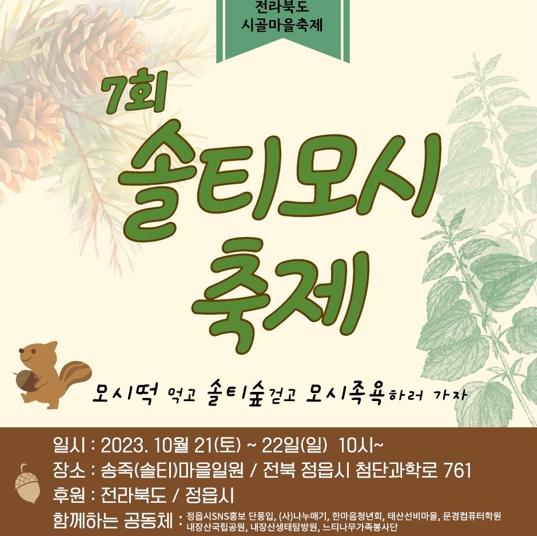 사라져가는 전통문화를 보존하고 마을 공동체를 회복하기 위한 제7회 솔티모시 축제가 10월 21일부터 22일까지 정읍시 솔티(송죽)마을 일원에서 개최된다.