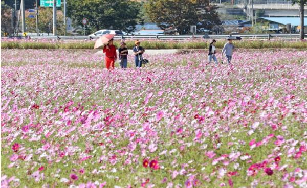 군은 지난 7월 코스모스 꽃씨 570kg을 파종, 잡초 제거 등의 작업을 통해 코스모스 꽃길을 조성했다.