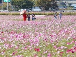 9월 말일 개화를 시작한 코스모스 꽃밭은 이달 중순 최대 절정을 이루며 관광객들의 마음을 사로잡고 있다.