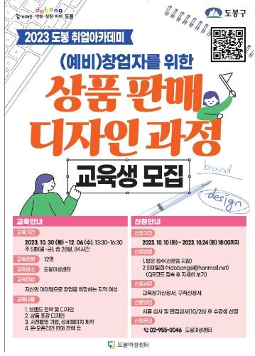 도봉구가 경력단절 여성 구민에게 초기 창업 정착을 지원하는 ‘상품 판매 디자인 창업 교육과정’을 운영한다.