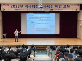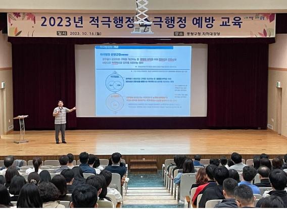 중랑구는 지난 16일 구 공직자 및 중랑구시설관리공단, 중랑문화재단 직원을 대상으로 ‘2023년 적극행정 및 소극행정 예방 교육’을 실시했다.
