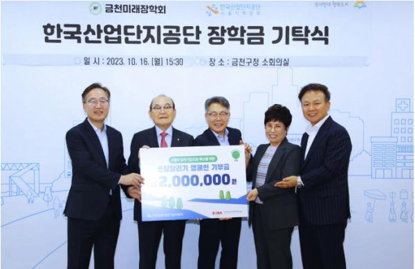 금천구는 한국산업단지공단 서울지역본부에서 장학금 200만 원을 (재)금천미래장학회에 기탁했다고 밝혔다.