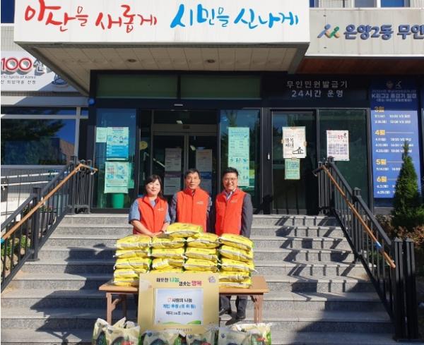 아산시 온양2동 행복키움추진단이 지난 16일 청각장애인 유하림 님으로부터 쌀 30포를 받았다.