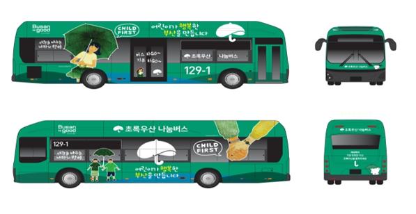'초록우산 나눔버스' 사업은 초록우산 어린이재단과 협업해 추진하는 사업으로, 초록우산 나눔버스로 운영되는 버스의 운송수입금 일부와 관련 업체의 기부금을 어린이가 행복한 부산을 만드는 데 기부하는 사회공헌활동이다.