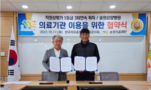 한국자유총연맹 음성군지회는 충주시 주덕읍에서 송원요양병원과 송원요양원, 송원장례문화원을 운영하고 있는 송원의료재단과 의료기관 이용을 위한 업무협약을 지난 17일 체결했다.