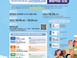 경기도평생교육진흥원은 10월 24일까지 다양한 시민참여 교육을 통해 올바른 시민의식 제고를 위한 ‘체험형 시민참여 교육’ 참여자를 모집한다.