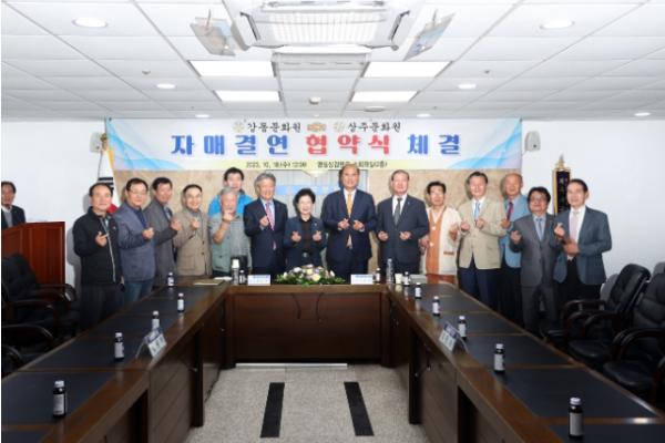 상주문화원과 서울 강동문화원은 10월 18일 12:00 명실상감한우 2층 소회의실에서 자매결연 협약식을 체결했다.