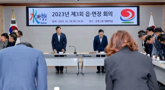 합천군은 지난 18일 군청 대회의실에서 ‘2023년 제3회 읍면장 회의’를 개최했다.