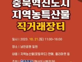 충청북도는 혁신도시 주민들에게 우수한 지역농특산물을 공급하고자 21일 충북혁신도시 내 남천공원에서 충북혁신도시 지역농특산물 직거래장터를 개최한다.
