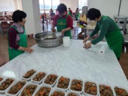 금회 “어르신 한끼뚝딱 밑반찬 지원사업”은 새마을부녀회 회원들이 이른 아침부터 정성 가득한 밑반찬(돼지갈비 등)을 함께 모여 정성껏 만들어 관내 45세대 어르신들에게 직접 배달을 통해 건강과 안부를 확인했다.
