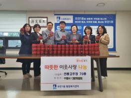 이날 기탁받은 고추장 70통은 우만1동 저소득 다문화가구 및 취약계층에 전달될 예정이다.