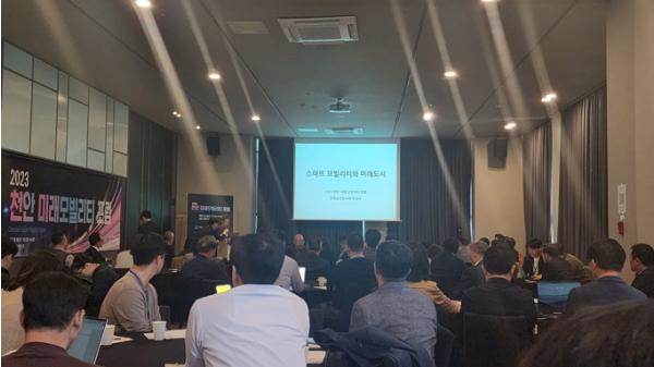 천안시가 한국자동차연구원과 미래모빌리티 혁신역량 구축사업을 진행 중인 가운데 지난 18일 ‘2023 천안 미래모빌리티 포럼’을 개최했다.