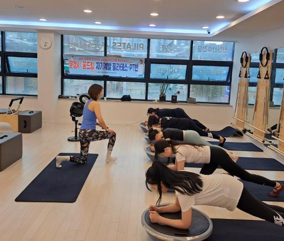 필라테스를 통해 건강하고 유연한 바디와 자세교정을 배우고 싶어하는 청소년이 많았지만, 선착순 5명을 접수를 받아 리포머, 매트, 짐볼, 세라밴드 등의 교육과정을 진행하여 참여한 청소년 모두가 필라테스·PT반 과정을 수료했다.