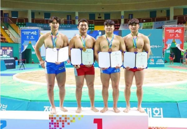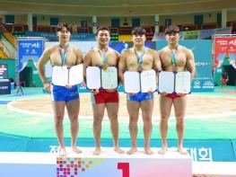 영암군민속씨름단이 구례실내체육관에서 열린 ‘제104회 전국체육대회 씨름’에 출전해 금 2, 은 2, 동 1, 5메달을 획득했다.