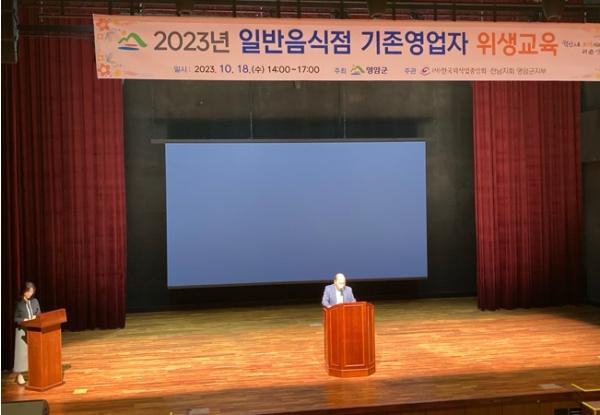 영암군이 18일 한국트로트가요센터에서 (사)한국외식업중앙회 영암군지부 주관으로 일반음식점 영업자 100여 명이 참여하는 식품위생교육을 실시했다.