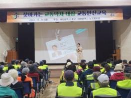 이날 교육은 고령자의 안전보행 방법, 무단횡단 금지의 중요성, 교통 승하차 시 유념해야 할 사항 등을 강의와 동영상을 통해 어르신들이 쉽게 알 수 있도록 교육을 진행했다. 또한, 실버차량 스티커를 배부하여 고령운전자에 대한 양보와 배려의 교통문화가 조성될 수 있도록 진행됐다.