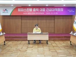 구상 부시장은 “정부에서 위기 경보를 ‘심각’ 단계로 격상한 만큼 추가적인 확산 방지를 위해 럼피스킨병의 매개체인 흡혈 곤충 박멸에 전 행정력을 총집중할 것”이라며 “읍면동에서는 지역 내 소 사육 농가를 대상으로 상황을 전파하고 농가에서 적극적으로 방역에 동참할 수 있도록 독려해 달라”라고 말했다.