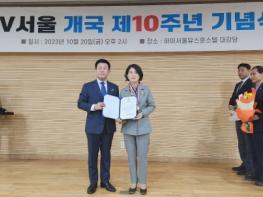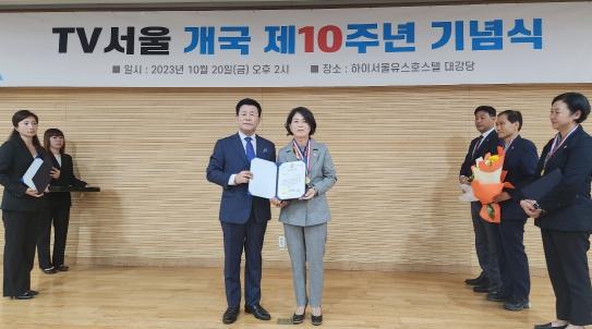 충남도의회 이현숙 의원(국민의힘·비례)이 20일 하이서울유스호스텔에서 진행된 ‘TV서울 개국 제10주년 기념식’에서 의정대상을 수상하는 영예를 안았다.