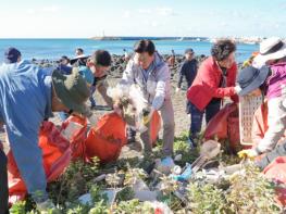 이날 캠페인에서 바다 속에 쌓인 쓰레기는 해녀들이 잠수해 건져올리고, 다른 참석자들은 일대 해안가를 걸으며 폐어구, 폐플라스틱, 스티로품 등을 줍는 등 각종 해양쓰레기 300여 포대를 수거했다.