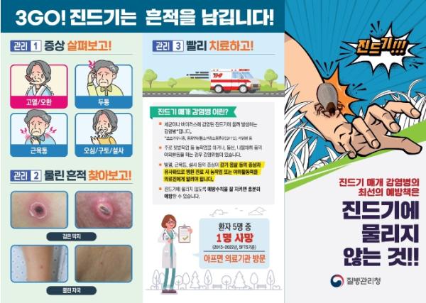 보건소에 따르면 진드기를 매개로 하는 감염병은 쯔쯔가무시증과 중증열성혈소판 감소증후군(SFTS)이 대표적이다. 쯔쯔가무시증은 털진드기의 유충에 물릴 경우, 중증열성혈소판감소증후군은 작은소피참진드기에 물리면 감염될 수 있으며, 가을철(9월~11월)에 많이 발생한다.