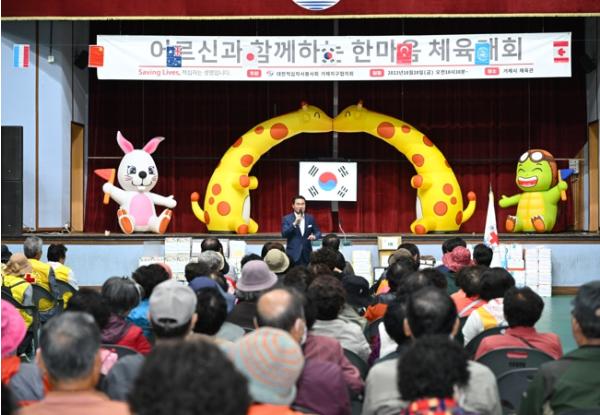 대한적십자사봉사회 거제지구협의회는 지난 20일 거제시체육관에서 관내 어르신과 면?동 단위 봉사회원 등 200여 명이 참석한 가운데 어르신과 함께하는 한마음 체육대회를 개최했다.