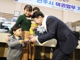 전주시청 민원실에서 가장 먼저 여권을 신청한 시민은 신혼부부인 송 모씨 가족으로, 어린 자녀와 함께 해외여행을 준비하기 위해 이날 여권을 신청했다.