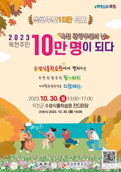 군은 그동안의 성과를 기념하고 지속적인 관광주민 유치 활동을 전개하고자 오는 10월 30일, 한국관광공사 세종충북지사와 공동으로 수생식물학습원(옥천군 군북면 대정리)에서 ‘옥천주민 10만 선포식’을 개최한다.