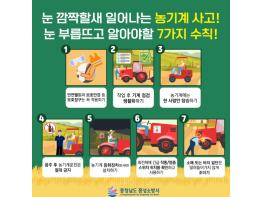 박지영 예방안전과장은 “대부분의 농기계 사고는 부주의로 인해 발생하는 만큼 사용 전 꼼꼼한 장비 점검 등 농민들의 안전수칙 준수와 각별한 주의가 필요하다”고 당부했다.