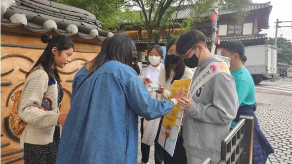 전주시청소년성문화센터는 지난 21일 전주한옥마을 일대에서 성별에 구애받지 않는 세상을 만들기 위한 ‘성평등으로, 물들이다’ 캠페인을 전개했다.