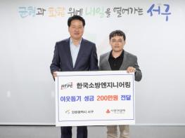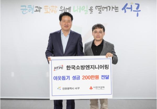 인천시 서구는 19일, 한국소방엔지니어링으로부터 이웃돕기 성금 200만원을 전달받았다고 밝혔다.