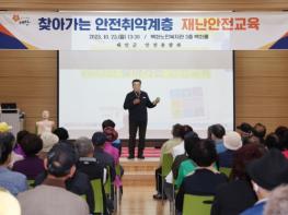 군은 지난 23일 태안읍 백화노인복지관에서 가세로 군수 등 군 관계자와 복지관 이용자 등 100여 명이 참석한 가운데 찾아가는 재난안전교육을 실시했다고 밝혔다.
