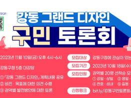 강동구는 다음 달인 11월 10일, 강동구청 대강당에서 ‘강동 그랜드 디자인’ 구민 토론회를 개최할 예정이라고 밝혔다.