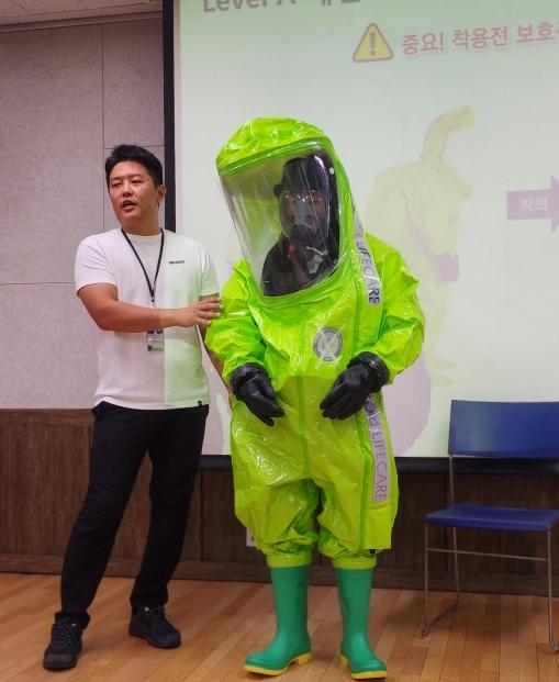 올해 7월 발생한 국제 우편물 테러 의심 사건 등으로 생물테러에 대한 사회적 관심이 높아진 상황 속에서 진행된 이번 훈련은 해당 분야의 전문가를 초빙해 생물테러 대응체계 교육, 초동조치 방법, 개인 보호복(Level A, Level C) 착탈의, 다중 탐지키트 및 검체 채취 이송 등 보건소 초동대응요원의 역량 향상을 위해 심도 있는 실습형 훈련으로 진행했다.