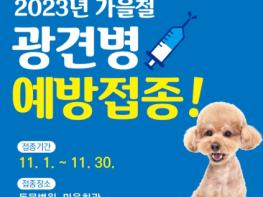 강릉시는 반려동물의 광견병 예방을 위해 오는 11월 1일부터 11월 30일까지 2023년 가을철 반려동물 광견병 예방접종을 실시한다.